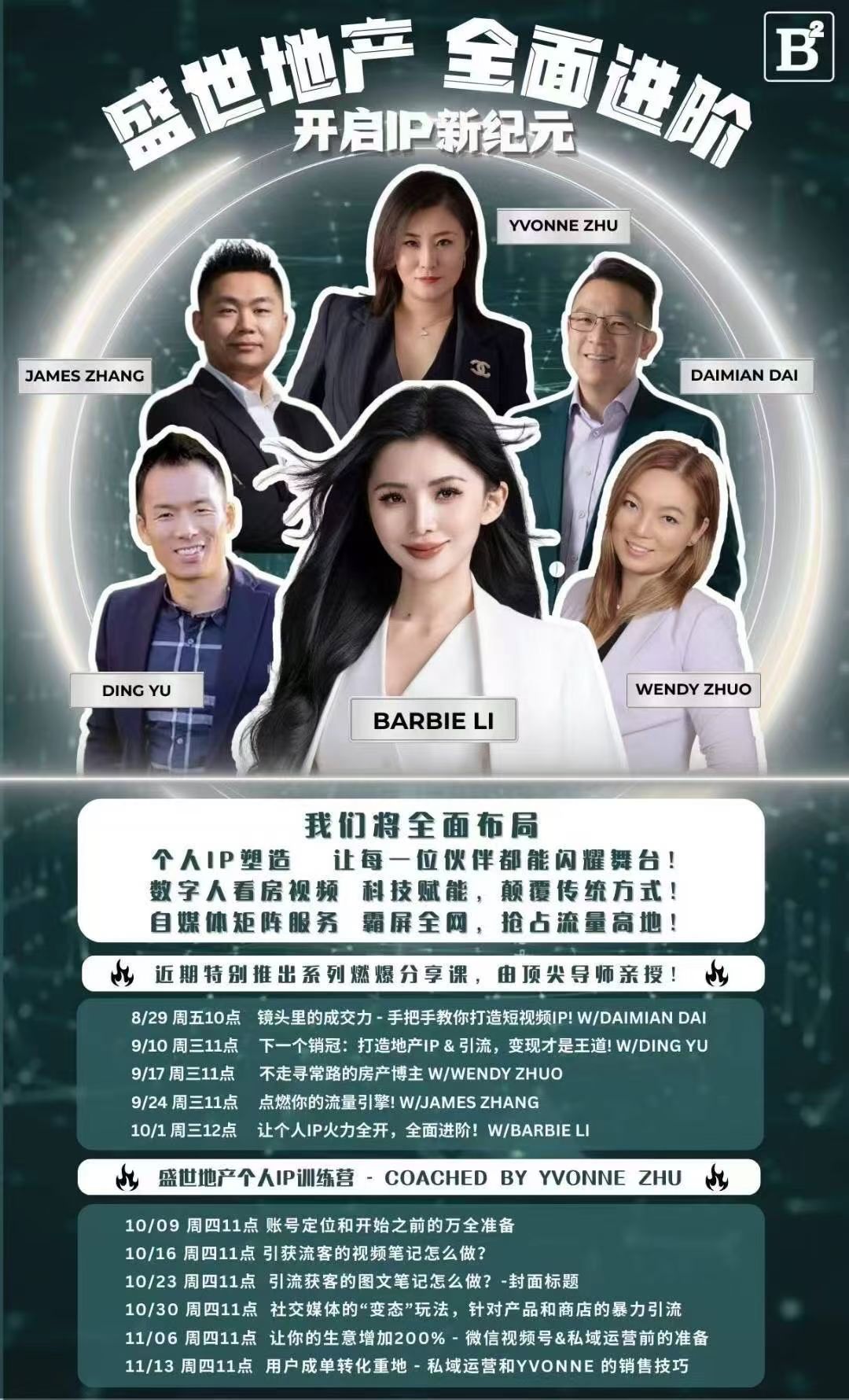 盛世地产经纪公司全新个人IP训练营重磅来袭!8/29至11/13,每周由资深博主和实战高手亲授短视频IP、房产自媒体矩阵、图文笔记与私域运营技巧。课程涵盖:镜头成交力、引流获客、社交媒体暴力玩法、视频号&私域转化,帮你打造房产IP,抢占流量高地,实现客户引流与销售变现。不限经验,地产经纪、房产销售、创业者均可报名。立即预约,开启你的地产IP新纪元!