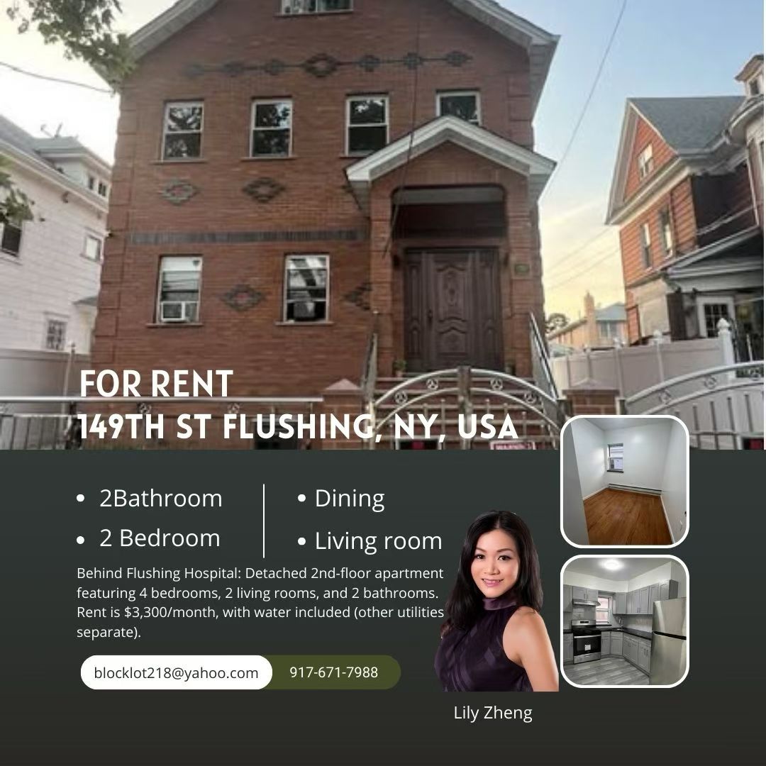 💎 法拉盛医院背后独立二楼4房2厅2卫出租