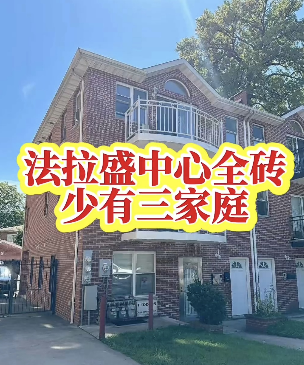 🏡 房源亮点:法拉盛中心半独立全砖房三家庭,2007年建,布局实用,每层均带阳台,一楼独立办公室可作为商用或诊所,二三楼为两套2房2卫住宅单元。