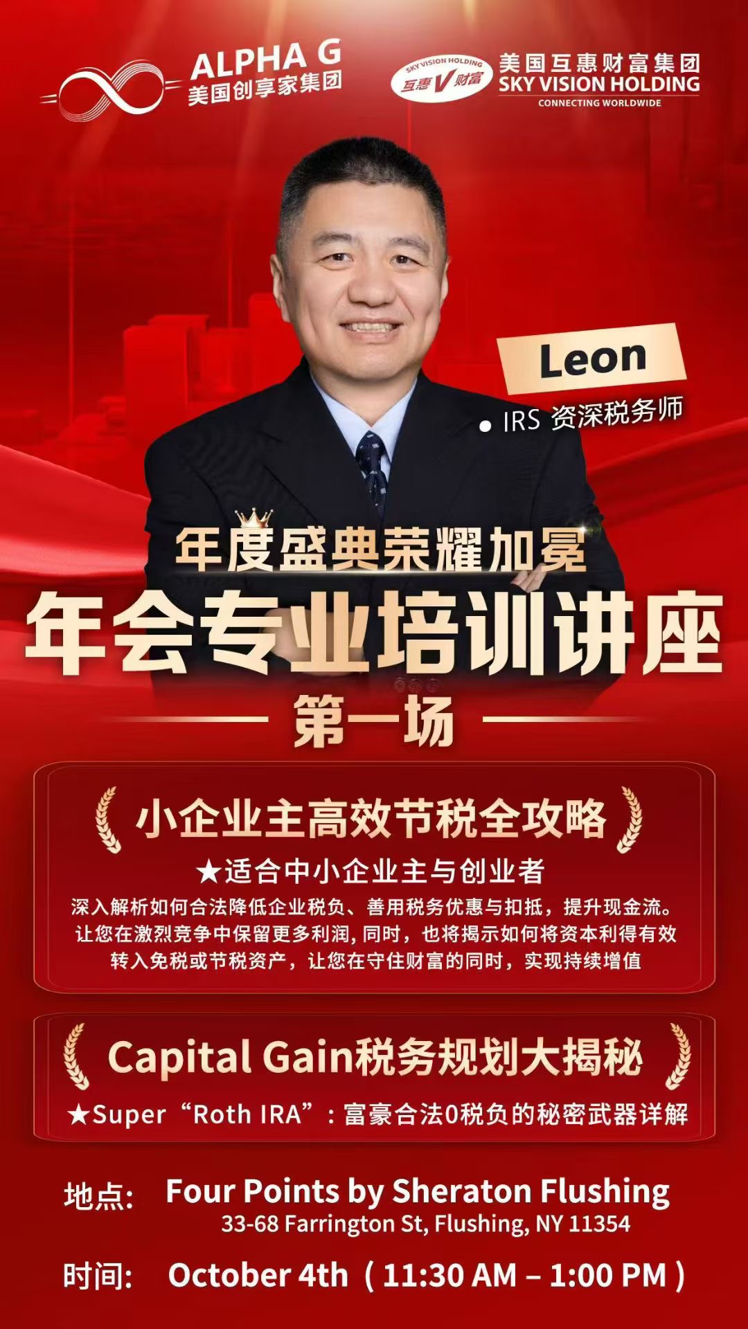 💥年度重磅财富盛宴!IRS资深税务专家Leon亲临纽约互惠创享家年会,现场手把手教你: