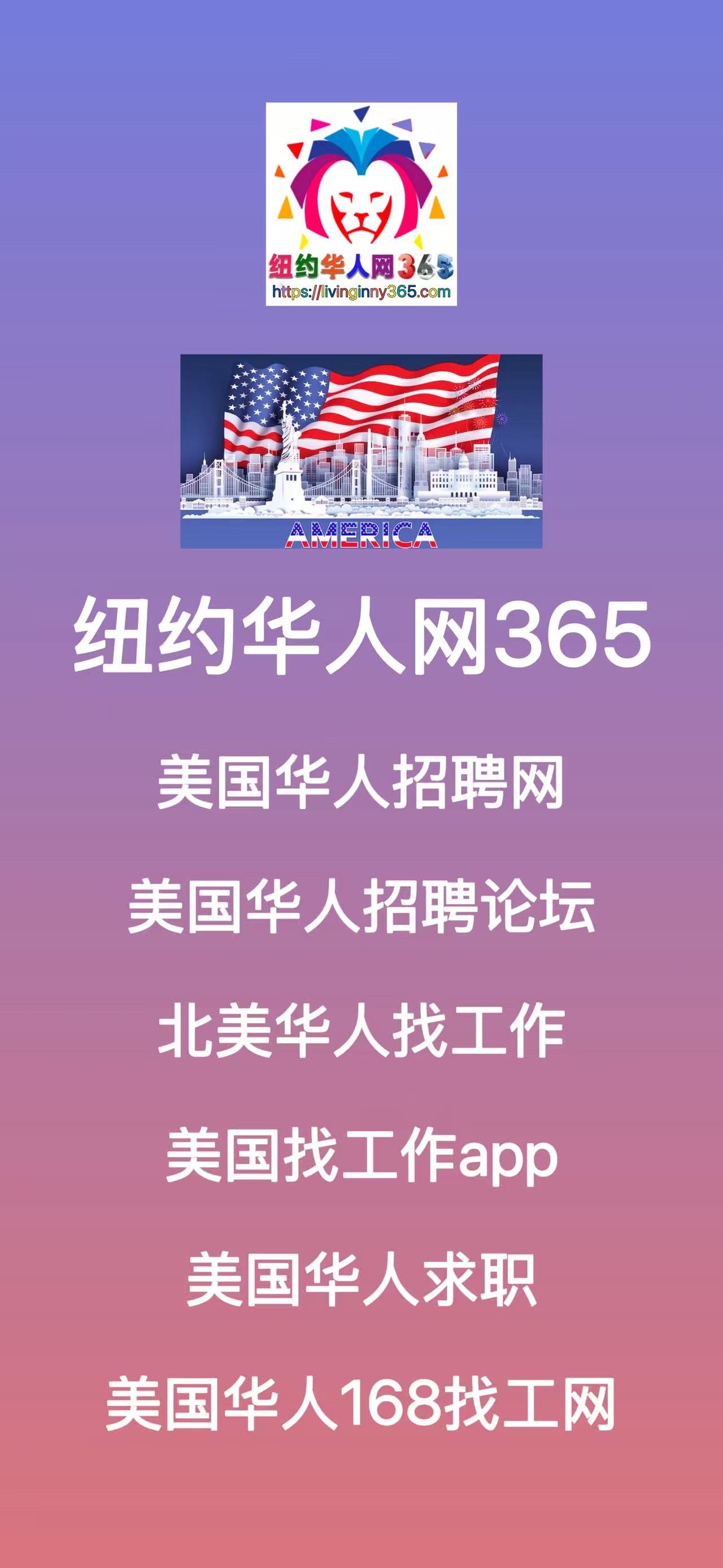 美国华人招聘网|纽约华人网365权威求职指南。纽约华人网365旗下美国华人招聘网,整合全美最新招聘信息,覆盖纽约、洛杉矶、旧金山、芝加哥、休斯顿等热门城市。提供餐馆、零售、教育、医疗、IT、物流、金融、地产等行业岗位推荐,支持在线投递简历、面试辅导、职业规划与企业招聘发布服务。助力北美华人快速找到高薪岗位,实现高效求职与招聘,免费发布职位,求职招聘一站式平台。