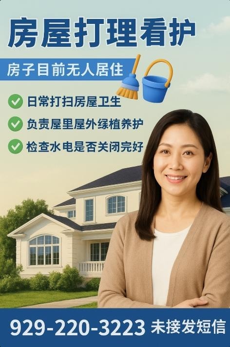 本人回国一年需要,急招一名女士要求爱干净利索的,联系人:朱先生 929 220 3223(因本人工作比较忙可以短信告知)