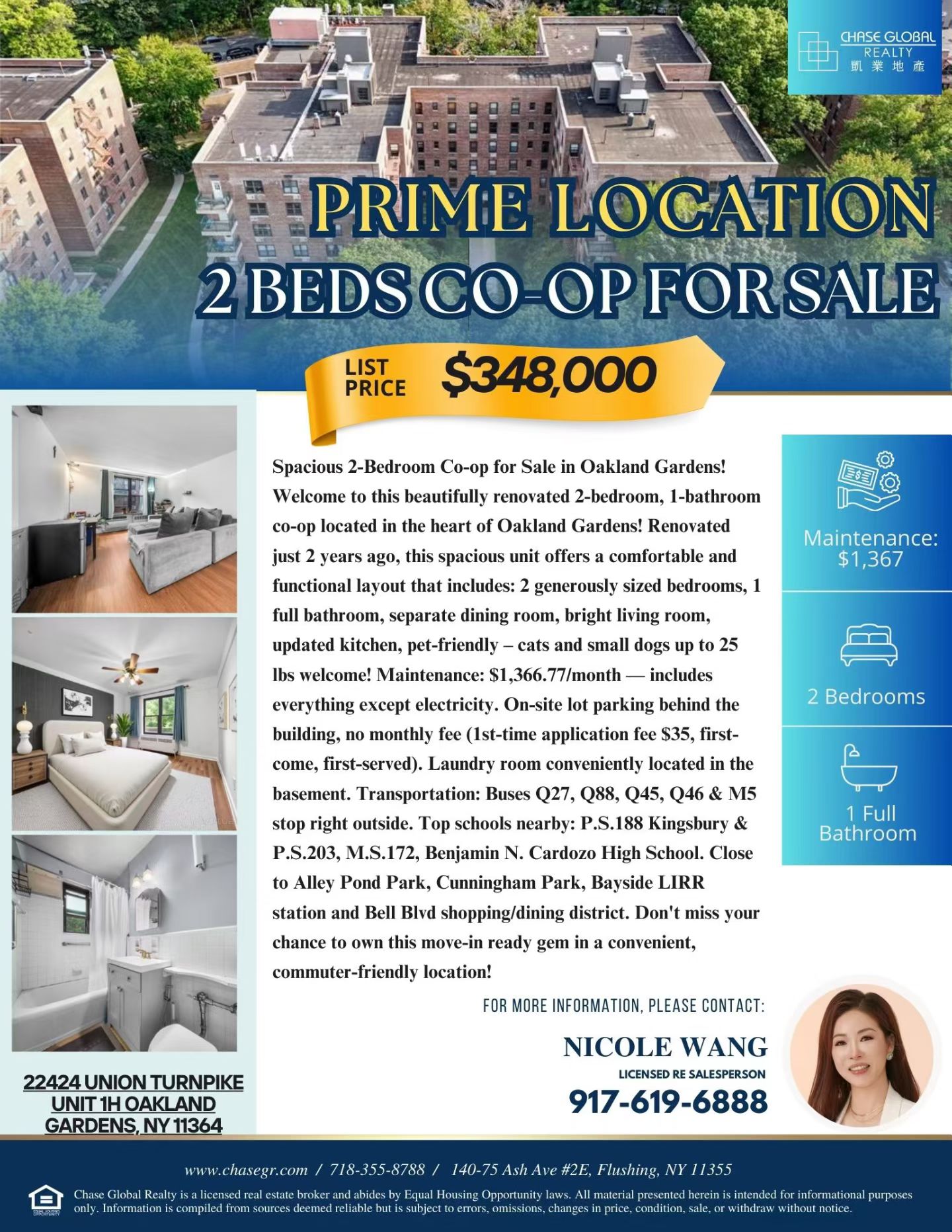 📞 联系方式:Nicole 646-301-7453 / 917-619-6888,预约看房及了解更多详情,先到先得!