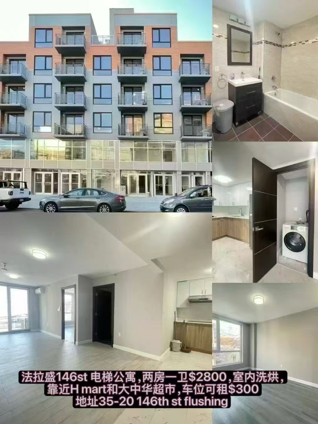 7)法拉盛146st 电梯公寓,两房一卫$2800,室内洗烘,靠近H mart和大中华超市,车位可租$300