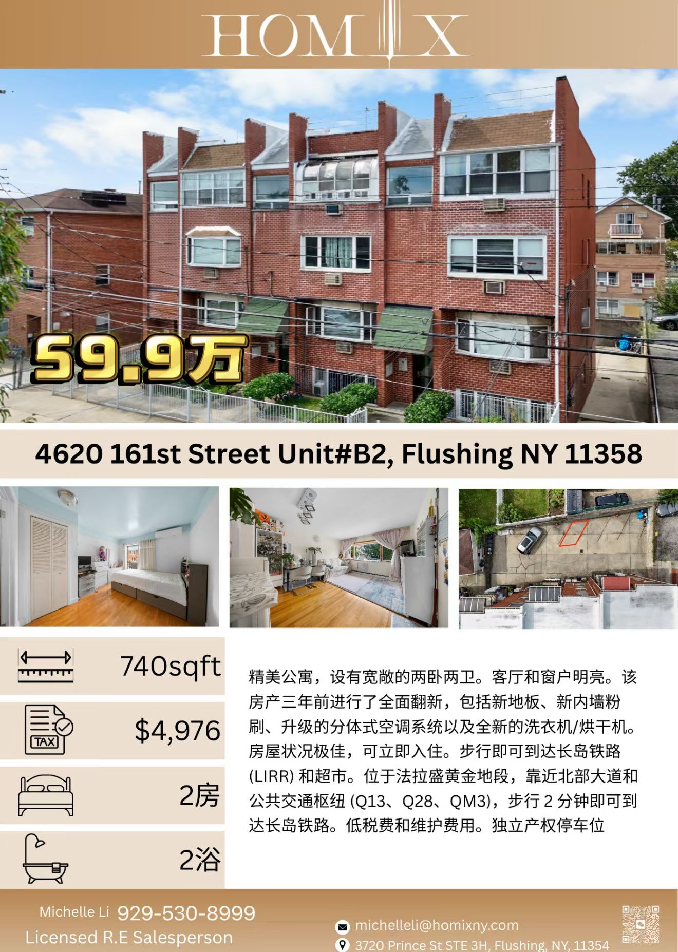 ✨ 拉法盛黄地金段精美公寓,超低理管费247每月 4974/地税