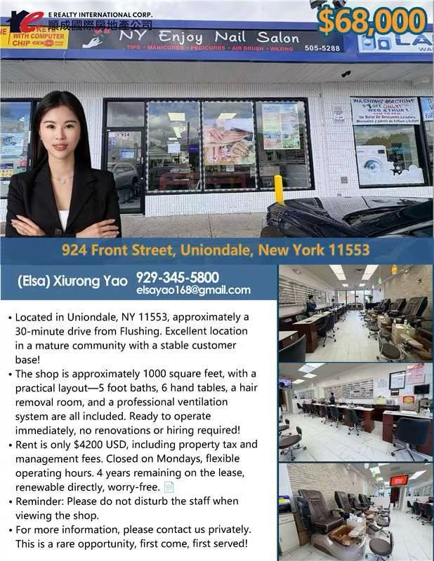 🔥 低成本创业机会|屋主急售 长岛38出口盈利美甲店 $68,000