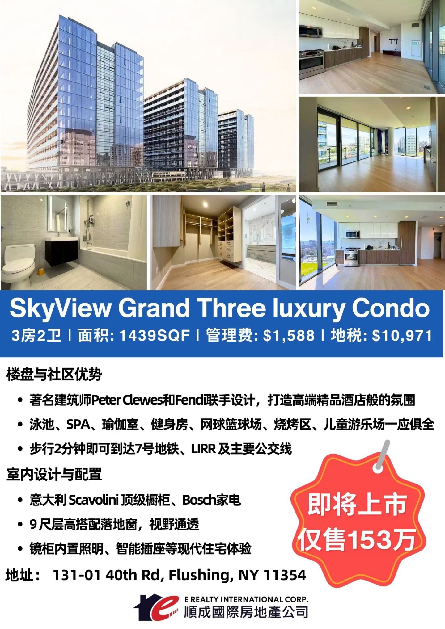 📢 法拉盛钻石康斗出售🏙️ SkyView Grand Three 豪华三房两卫 Condo 出售