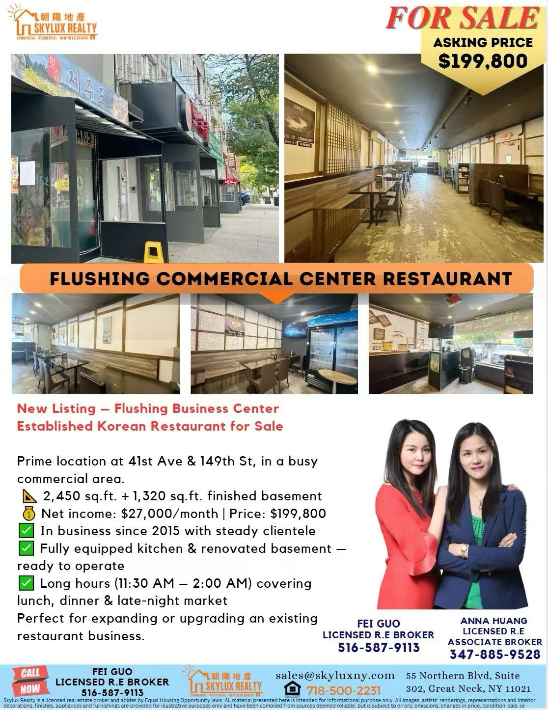 新上市 法拉盛商業中心 韓國萬紅老餐廳出售