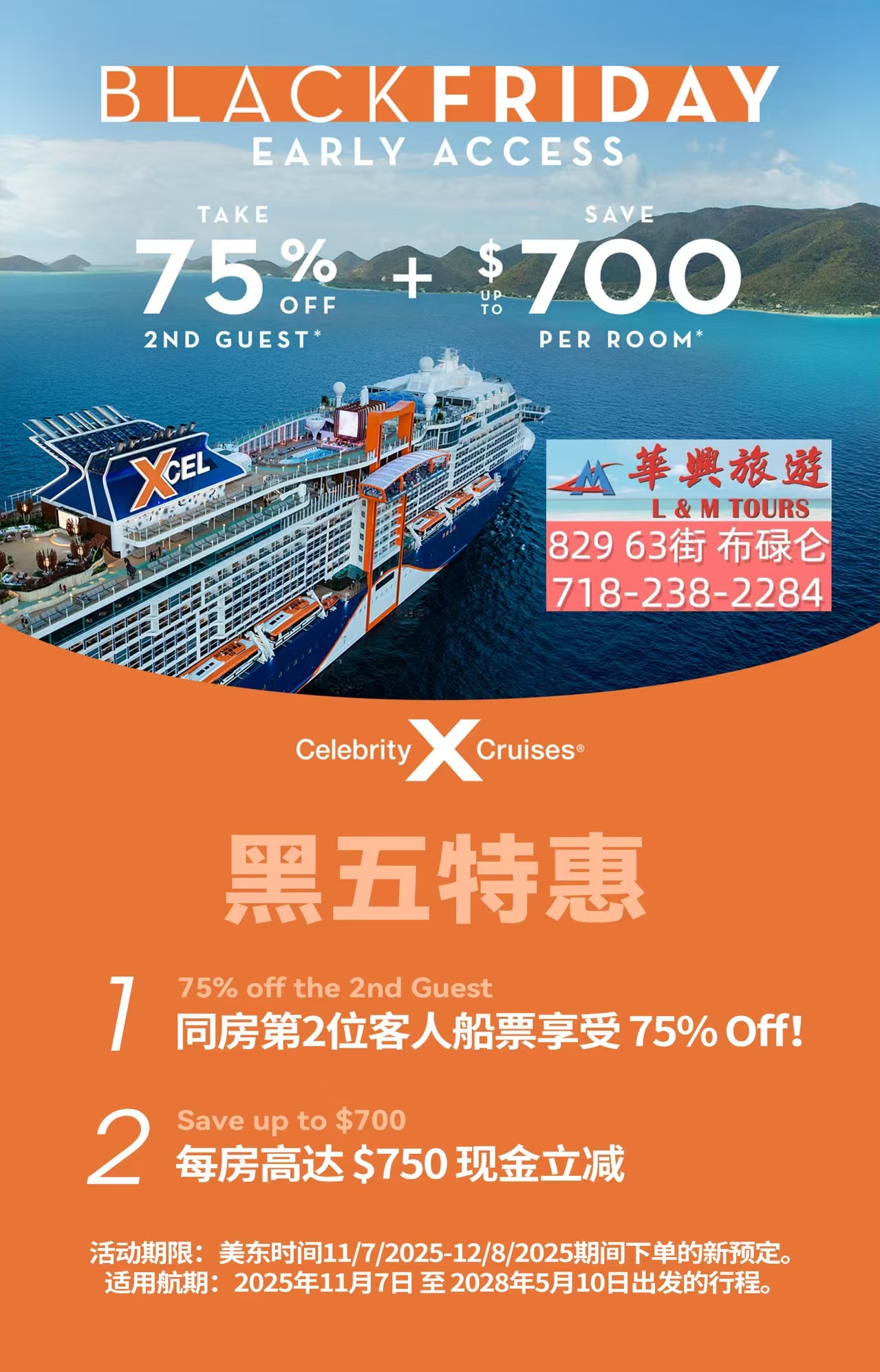 1. 电话咨询:拨打 718-238-2284,专业顾问为您量身推荐黑五特惠线路。