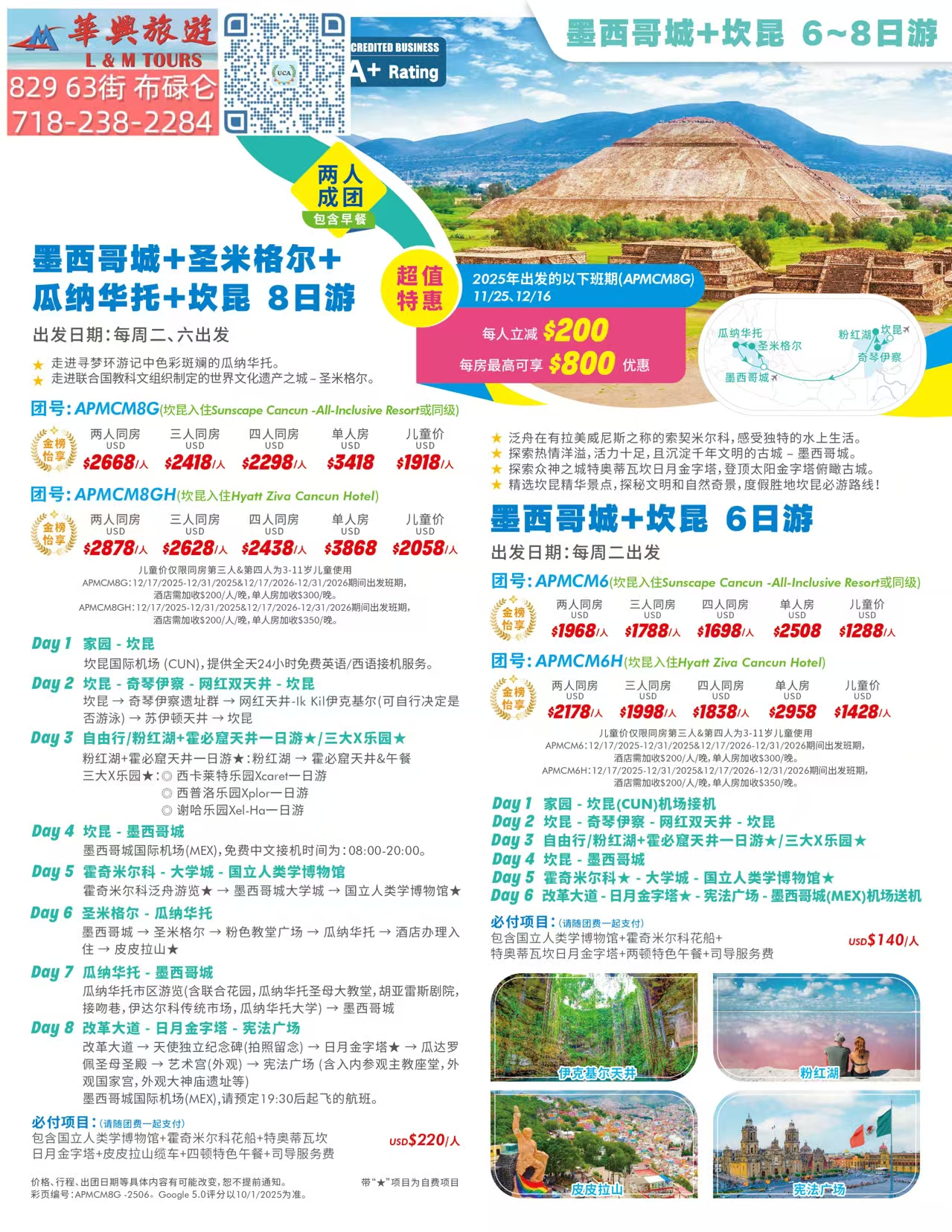 ⭐APMCM8G限定特惠班期11/25/25、12/16/25出发更可叠加💵 每人立减 $200|每房最高立减 $800