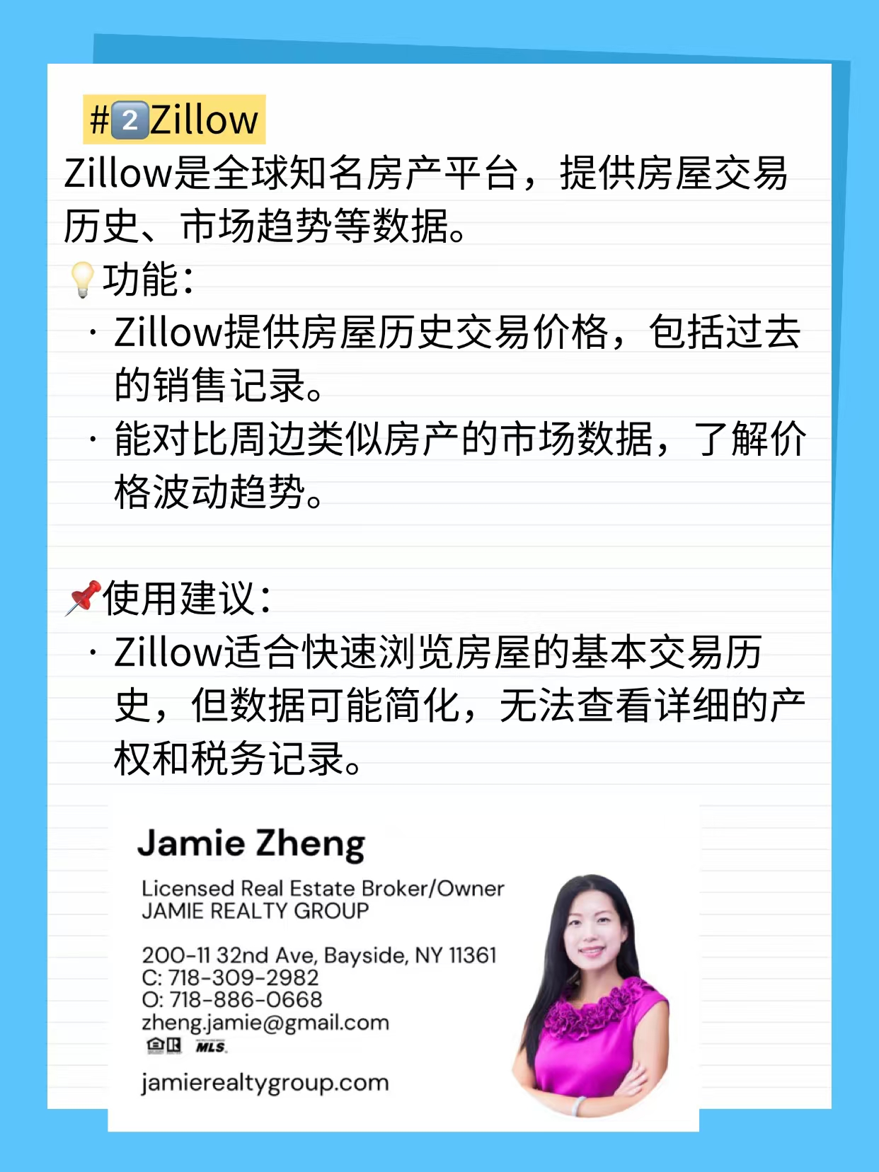 • 纽约本地专业经纪人(如佳业地产 Jamie 718-309-2982)可提供完整历史交易数据,并结合市场分析,给出买房建议。