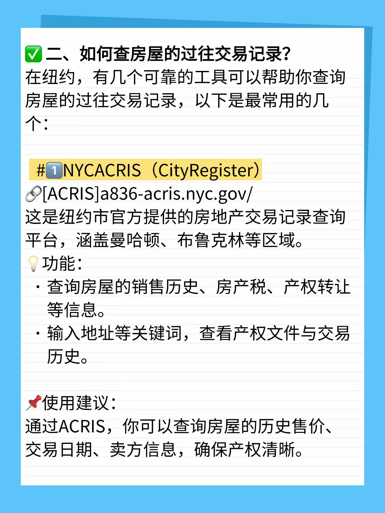 1. NYC ACRIS系统(Automated City Register Information System):