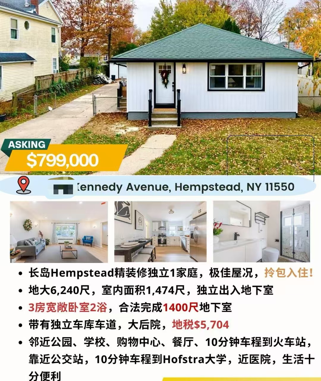 💥新上市💙🏡✨ 长岛 Hempstead 精装独立屋 · 拎包入住 · 超大地块 · 超强性价比!