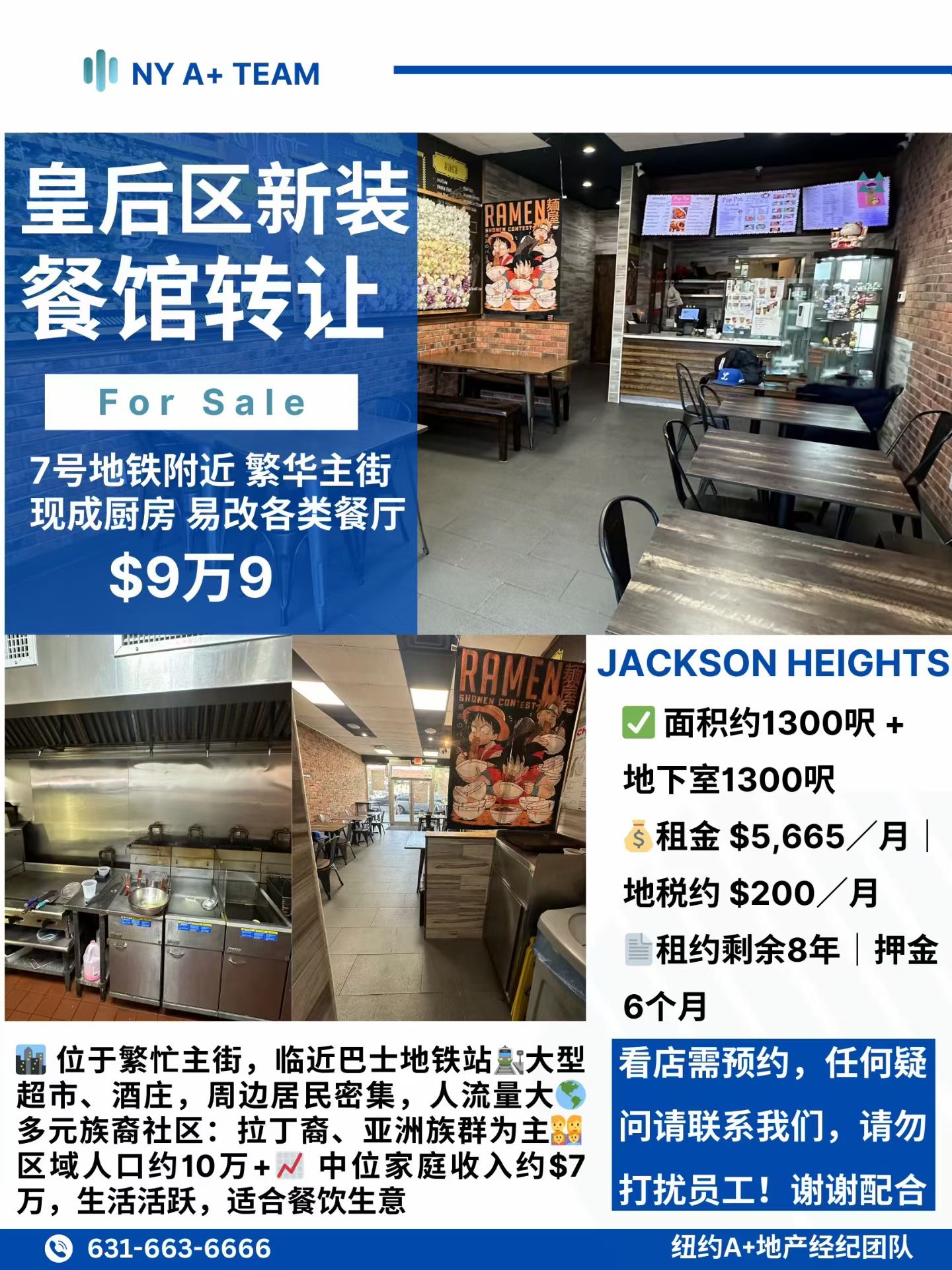 最新价格调整📍皇后区Jackson Heights 商业主街新装修餐馆转让 |9万9