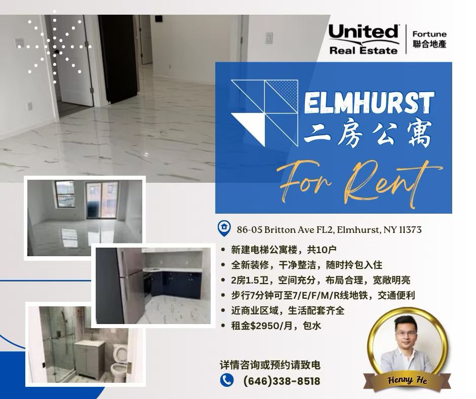 🏢 Elmhurst 全新电梯公寓出租|2 房 1.5 卫