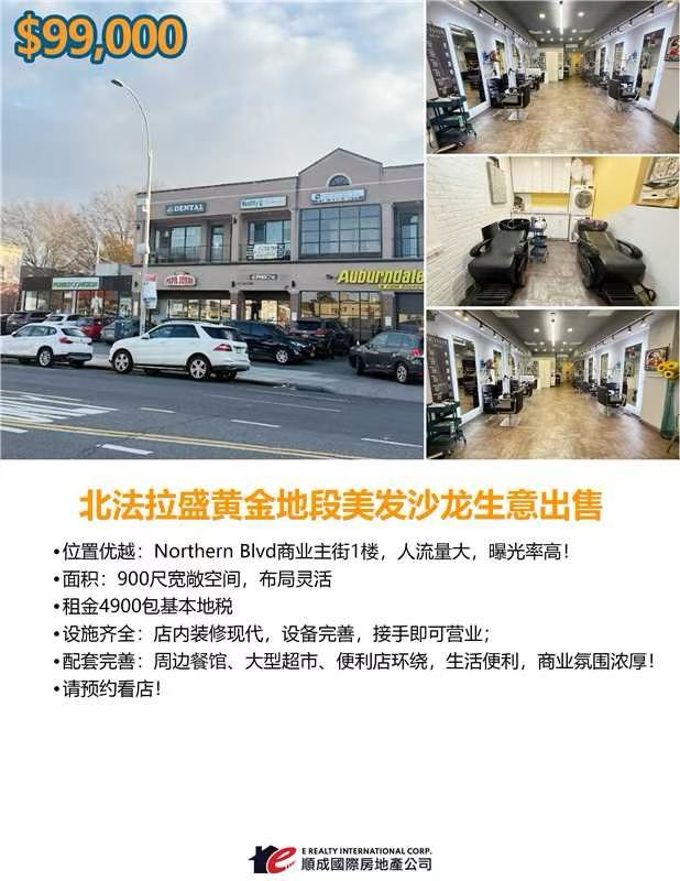 最新上市🔥【北法拉盛黄金地段美发沙龙生意出售】🔥