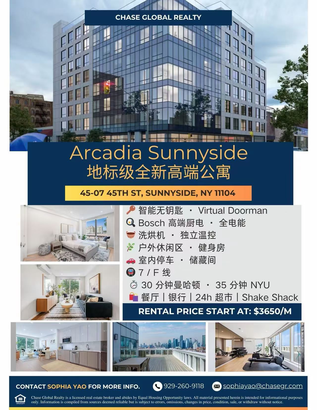 🌆【最美大楼 Arcadia Sunnyside高端公寓租赁开启🔥】