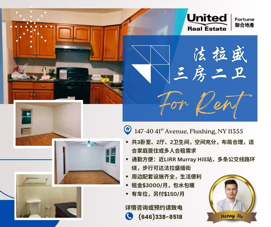 正在寻找皇后区房屋出租?无论你关注的是 法拉盛租房、Elmhurst 公寓出租,还是安静社区的大户型整层,以下由联合地产代理的多套精选房源,都具备地段好、空间大、交通便利、性价比高等核心优势,适合家庭长期居住或朋友合租。