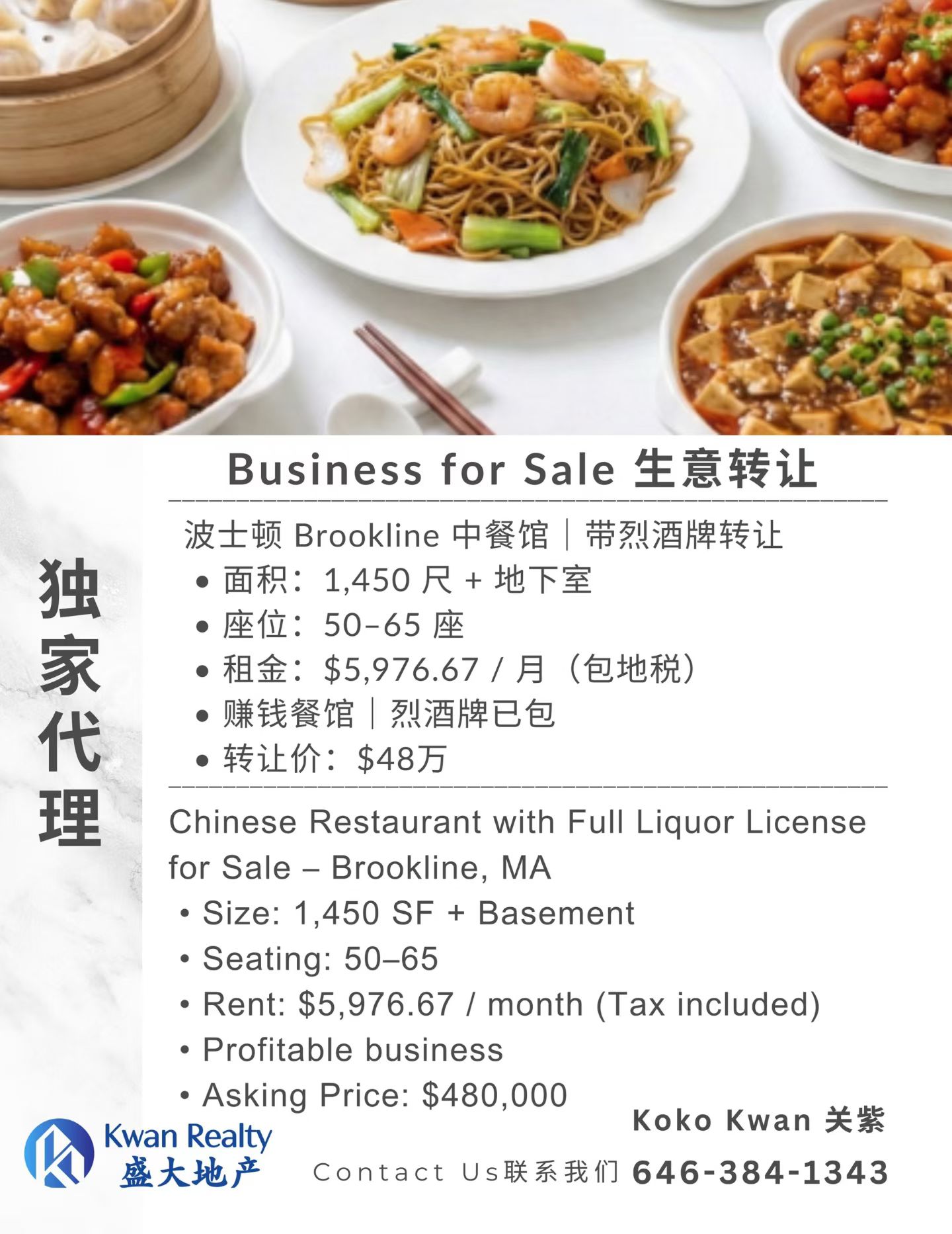 如果你正在寻找一间真正能赚钱、地段硬、条件成熟、风险可控的波士顿餐饮项目,这家位于 Brookline 核心区域 的中餐馆,是目前市场上**极少数同时具备“地段 + 烈酒牌 + 低租金 + 稳定盈利”**的优质资产。