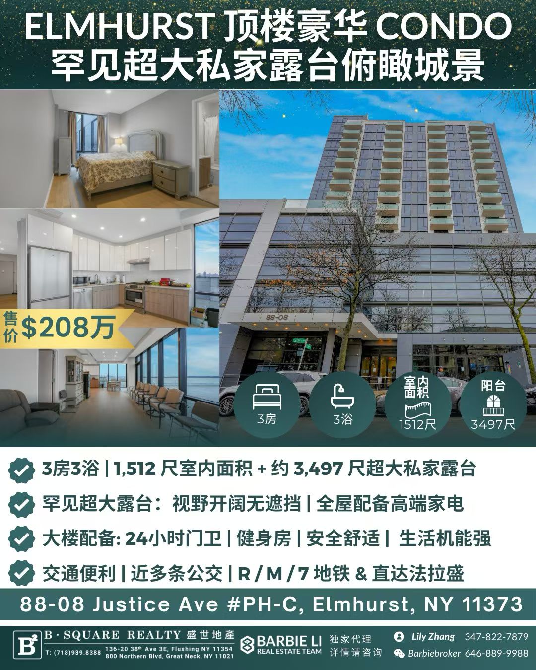 🎉 Elmhurst 顶楼奢华 Condo|带超大露台新上市! 🎉