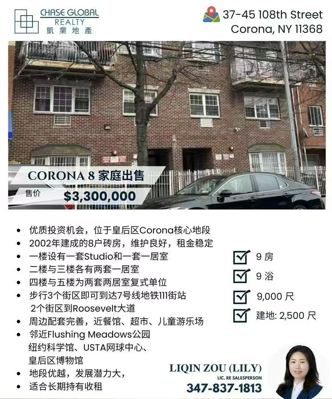 在当前纽约多家庭库存持续紧张的背景下,这套位于 Queens Corona 核心区域 的 8 家庭整栋物业,无论从 现金流、安全性、还是未来增值潜力 来看,都是极具竞争力的长期资产配置标的。