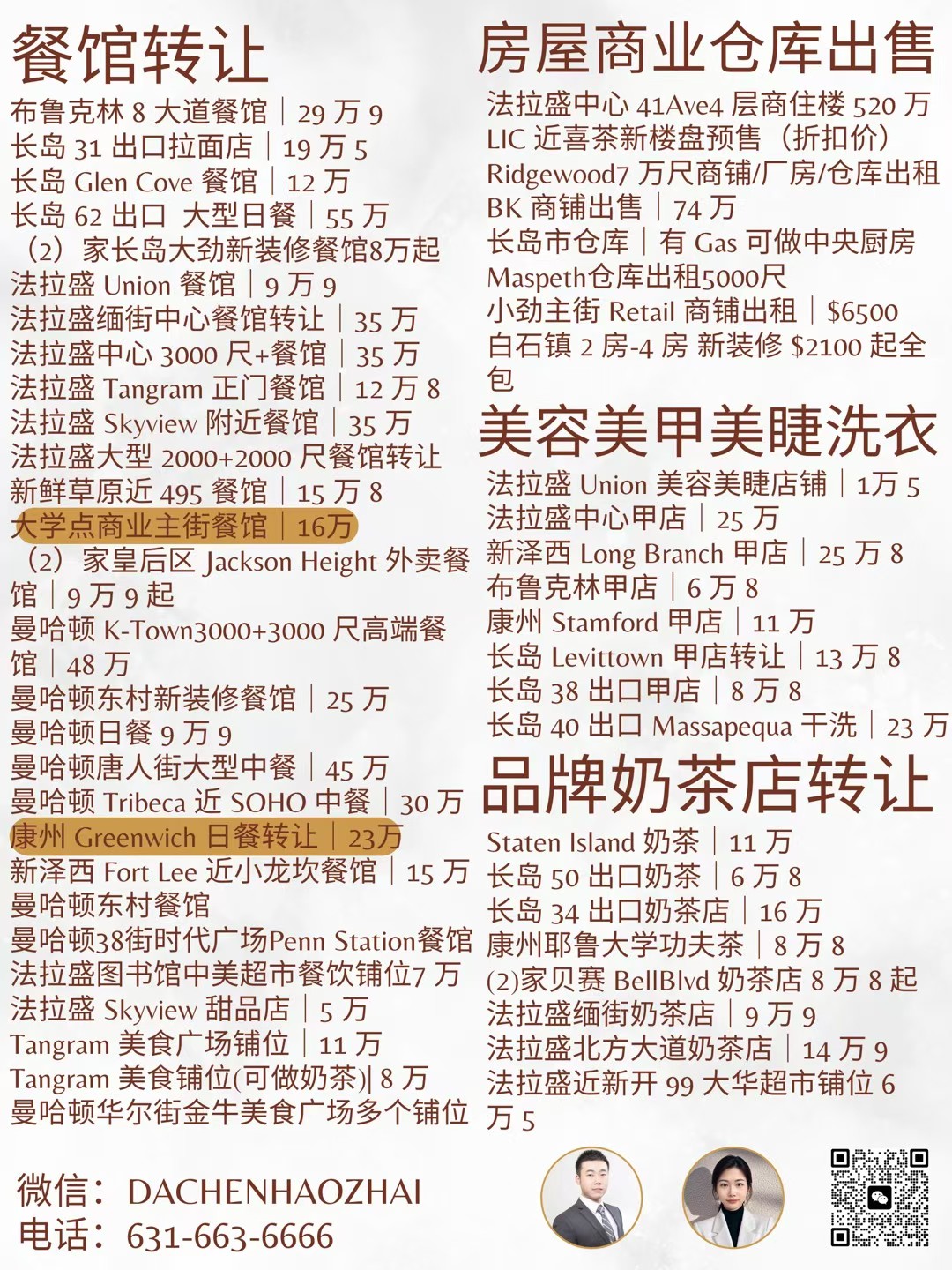 在纽约及长岛地区,无论你是想投资、开店、扩张业务,还是寻找理想办公/仓储空间,我们都能提供全方位一站式资源。
