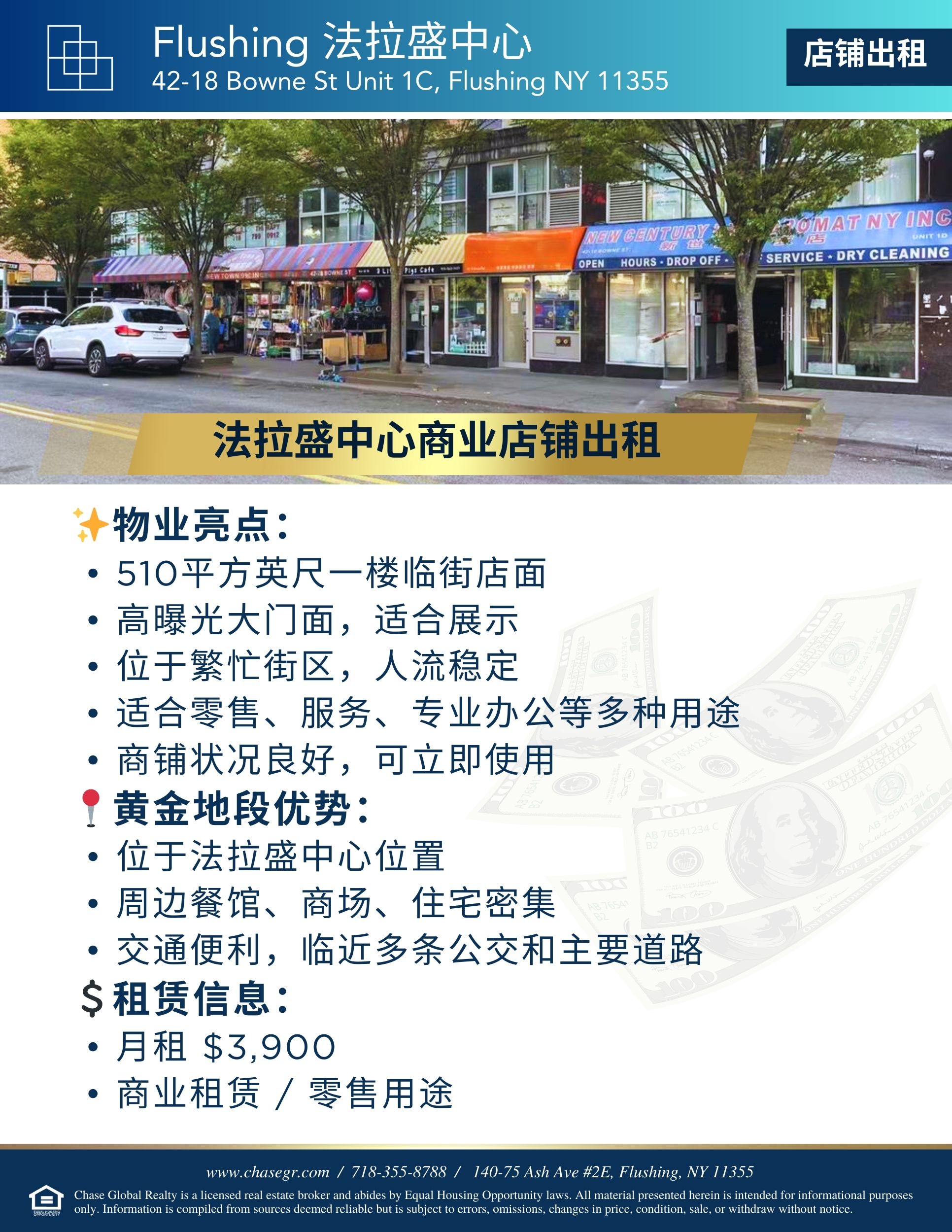 抓住法拉盛最繁忙商圈的优质店面机会,为您的生意带来更高曝光与客流!