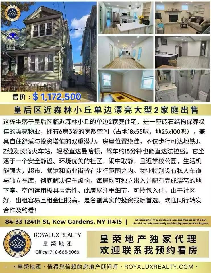 🎖️皇后区近森林小丘单边漂亮2家庭出售