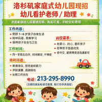 洛杉矶家庭式幼儿园现招 幼儿看护老师 / 助理