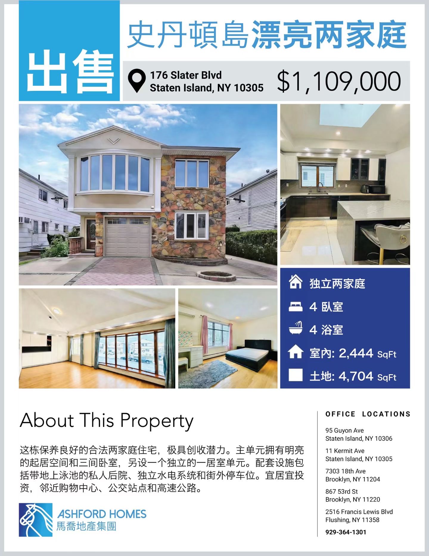 现在正是入手史丹顿岛优质房产的最佳时机,无论是自住、投资还是多代同堂,这里的单家庭与双家庭房源都能满足您的需求。房源稀缺,机会难得,抓住机会,立即联系安排看房,开启您的理想置业之旅!