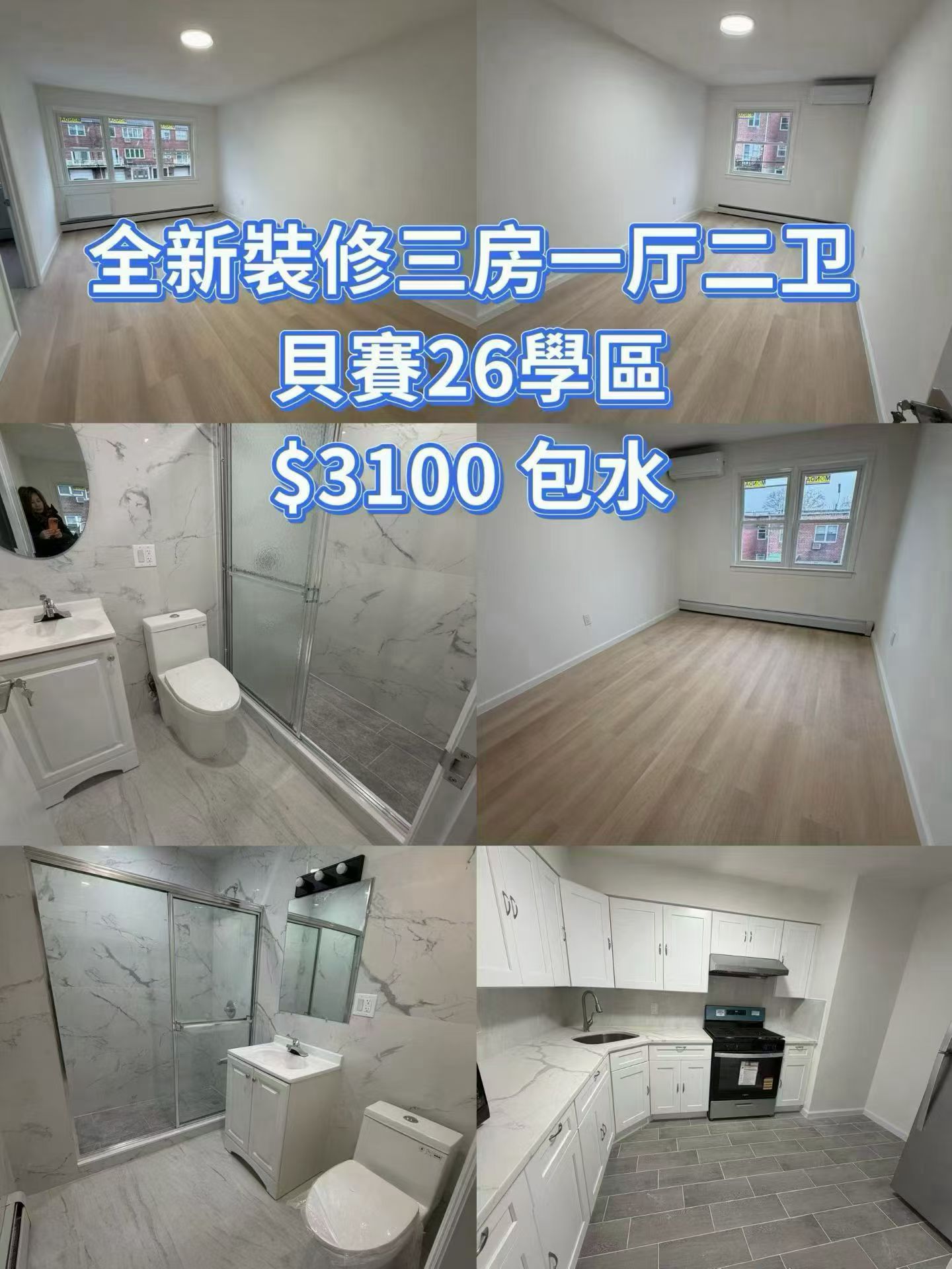 贝赛26学区的全新装修住宅现出租,二楼与三楼各自为三房一厅两卫格局,适合家庭自住或长期租赁。房屋设计现代、空间宽敞,每套公寓配备全新设施,居住舒适便利。无论您是希望让孩子就读优质蓝带学校,还是追求交通便利和生活便利的家庭,这里都能满足您的需求。