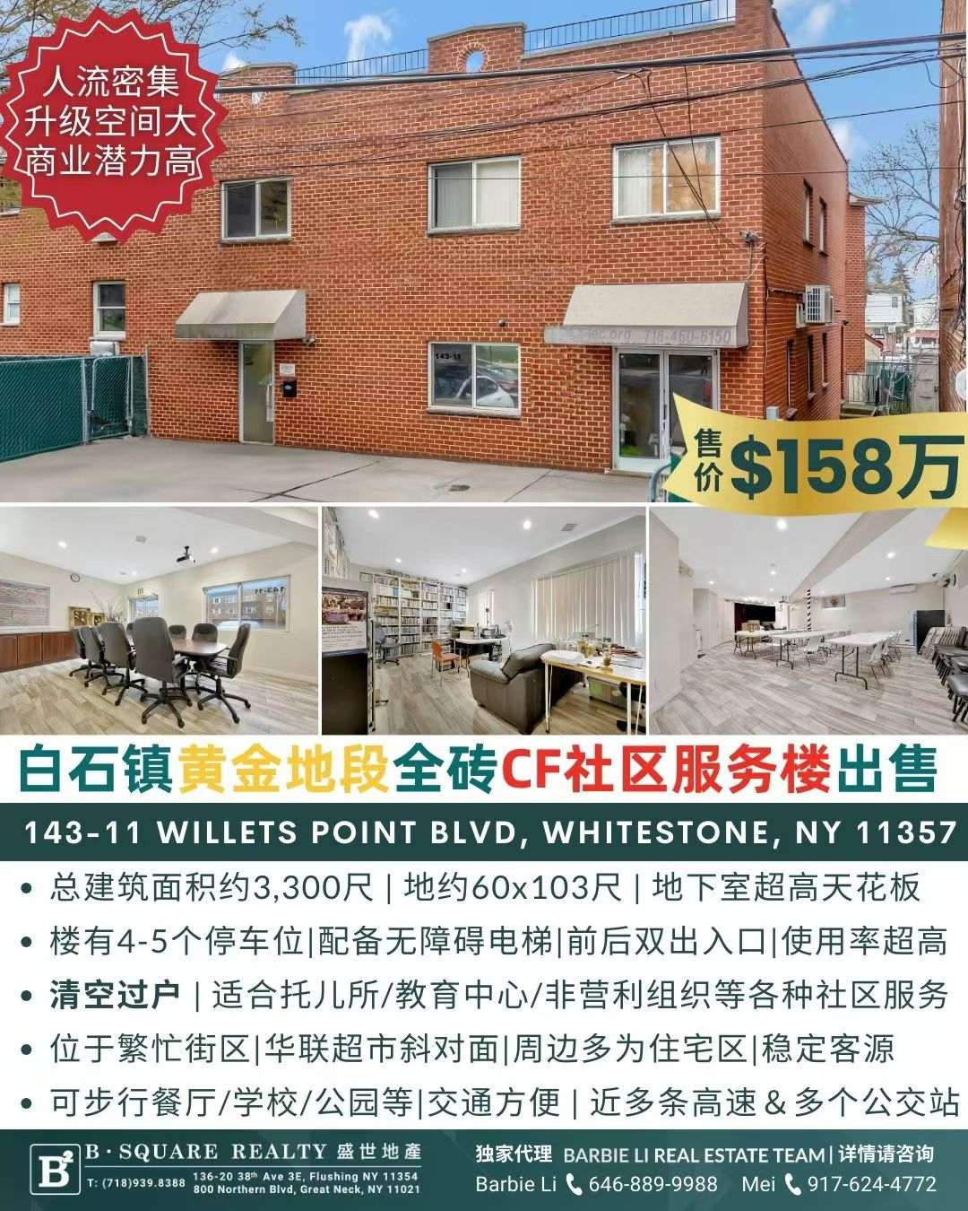 本物业位于 Whitestone 白石镇最成熟的主干街区之一——Willets Point Blvd,正对大型华人超市,人流与车流长期稳定。该地段以本地居民高频消费 + 社区服务刚需为核心特征,商业黏性强,抗周期能力明显优于普通商用物业。