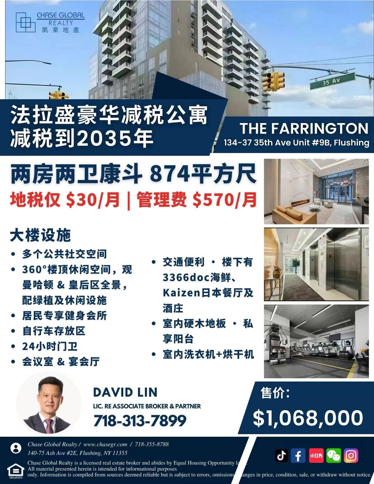 这套 The Farrington康斗兼具地段、景观、设施、产权和低持有成本优势,是法拉盛核心区难得的高性价比物业。无论是自住享受高品质生活,还是投资出租获得稳定现金流,都是绝佳选择。