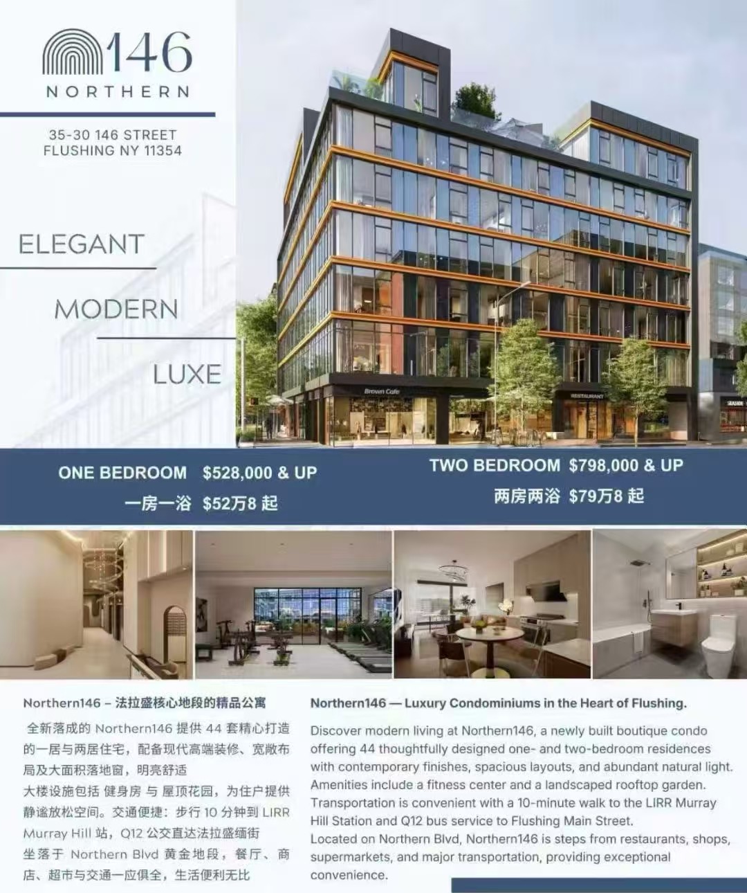 Northern146 位于法拉盛核心生活圈,是一处全新落成的精品公寓项目,主打一居与两居高端住宅。项目整体设计现代简约,空间规划合理,每户均配备大面积落地窗,引入充足自然采光,兼顾舒适度与实用性,无论自住还是长期投资都具备极高价值。