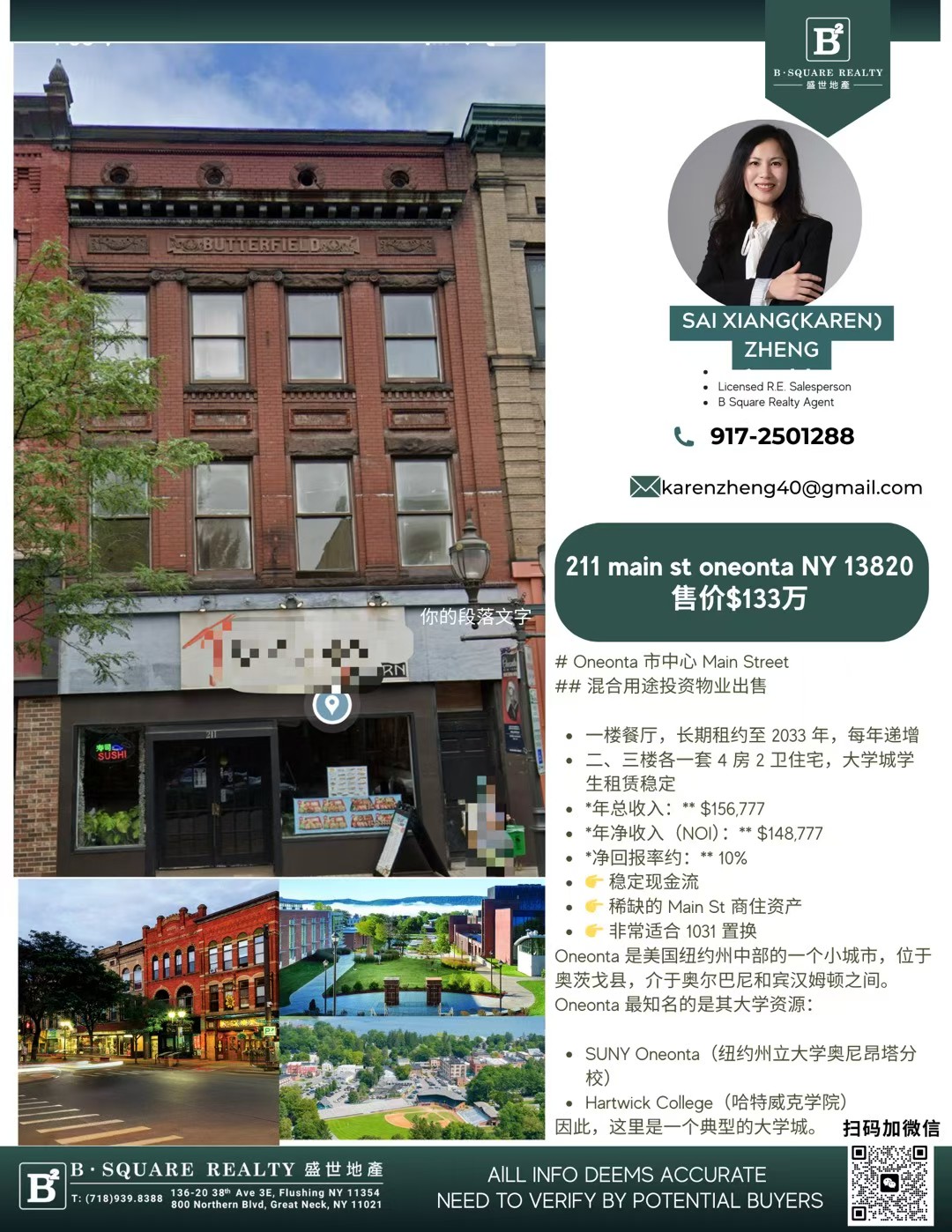 🌟 位于 Oneonta 市中心 Main Street,商业氛围浓厚,交通便利