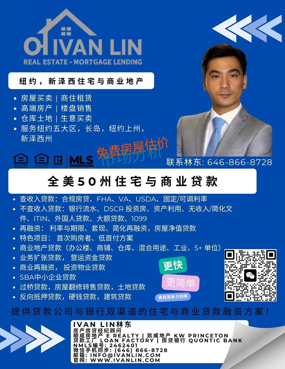 Ivan Lin 林东,全美 50个州持牌房贷与商业贷款顾问,直通银行和贷款机构,贷款机构全美名列前茅,不管是小额贷款还是过亿融资,利率好,审批快,贷款体系多元化。提供贷款公司与银行双渠道贷款融资!