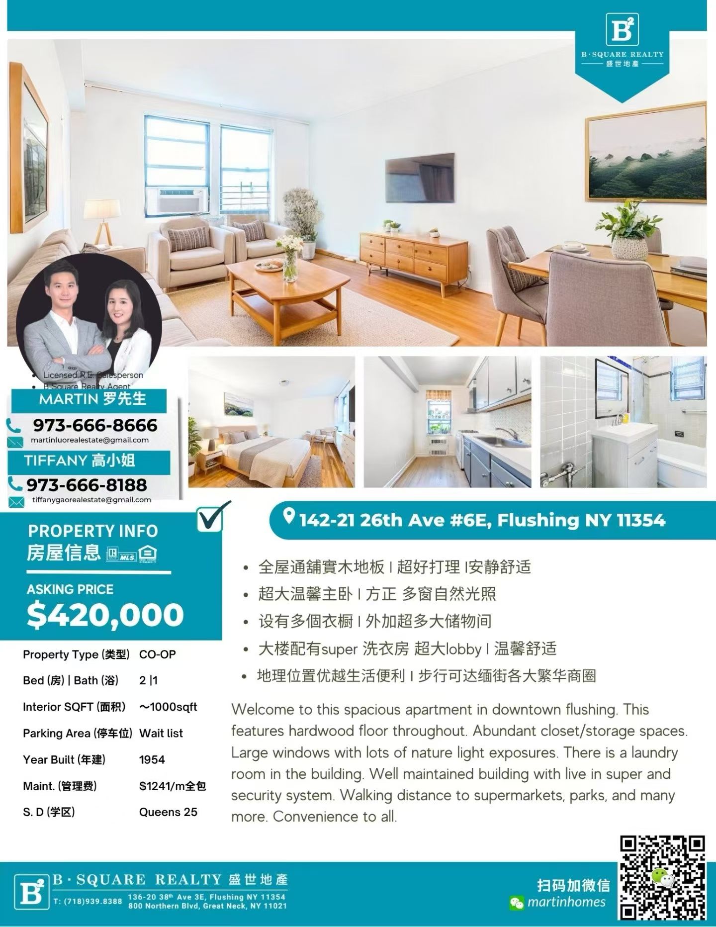 这套位于法拉盛中心地段的两房Coop公寓,面积宽敞,布局方正,完美兼顾居住舒适度与投资价值。无论是首次购房者还是投资客,都能在这里找到理想的生活与投资平衡点。