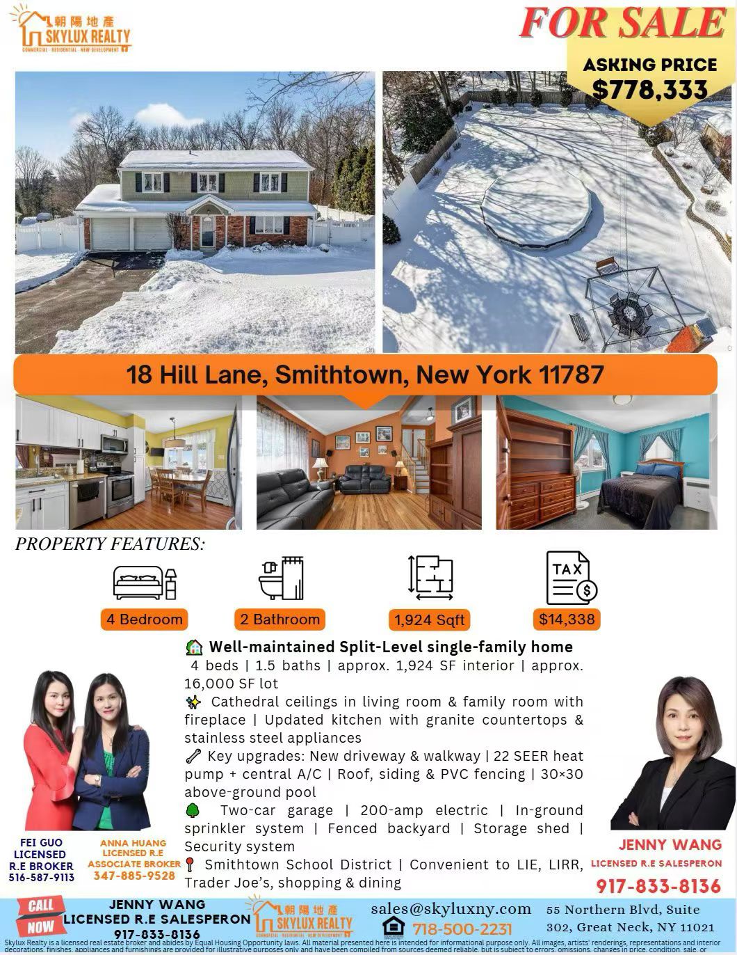 长岛房屋出售 位于 Smithtown 长岛黄金社区,这套维护良好的 Split Level(Split Ranch)长岛住宅 提供宽敞舒适的家庭生活空间。坐落在约 16,000 平方英尺的超大地块上,室内面积约 1,924 平方尺,布局合理,兼顾居住与娱乐,是家庭理想之选。