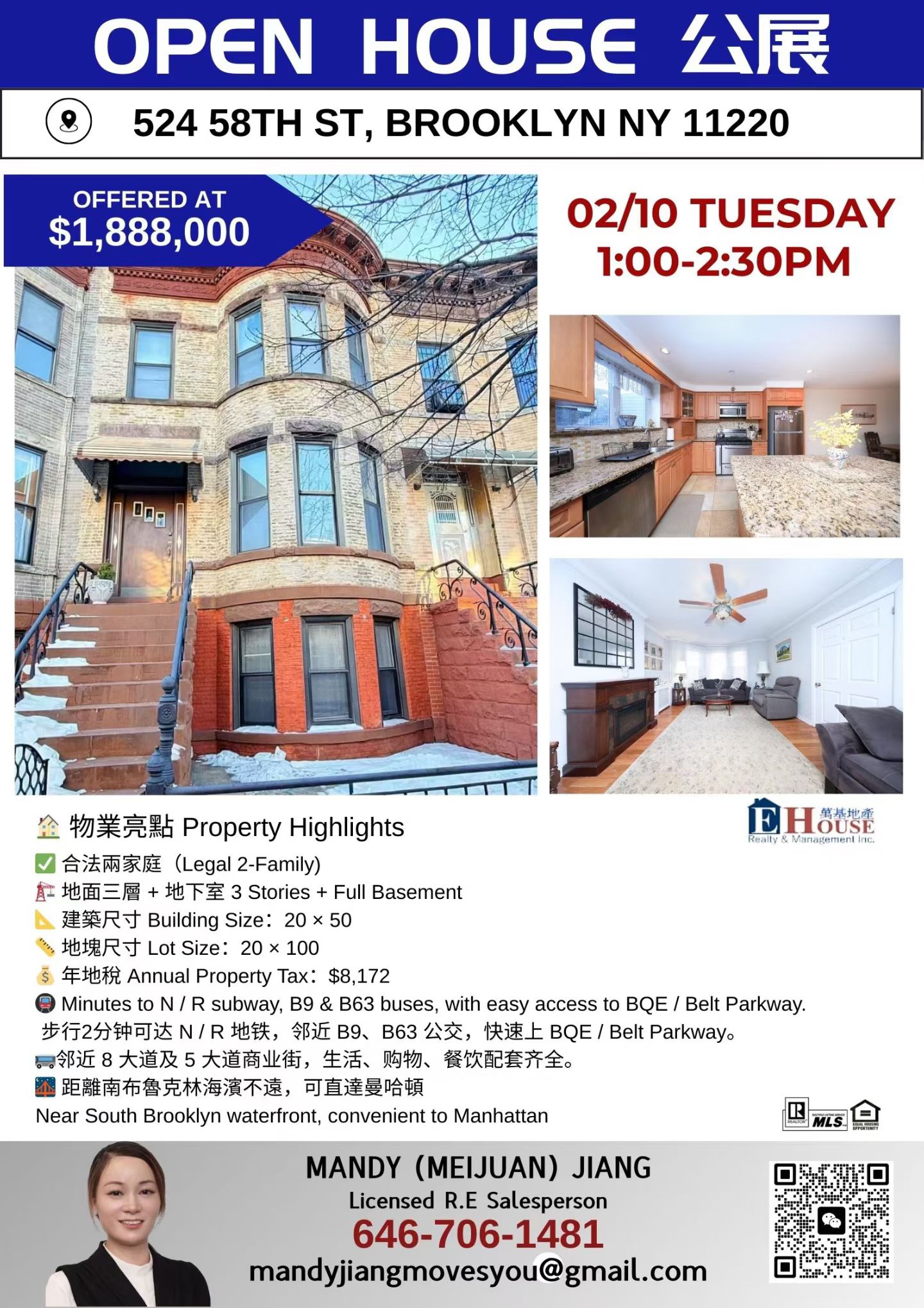 这栋524 58TH ST两家庭住宅,地理位置优越、布局合理、交通便利,无论自住还是投资出租都是不可多得的优质房源。欢迎Open House当天莅临参观!