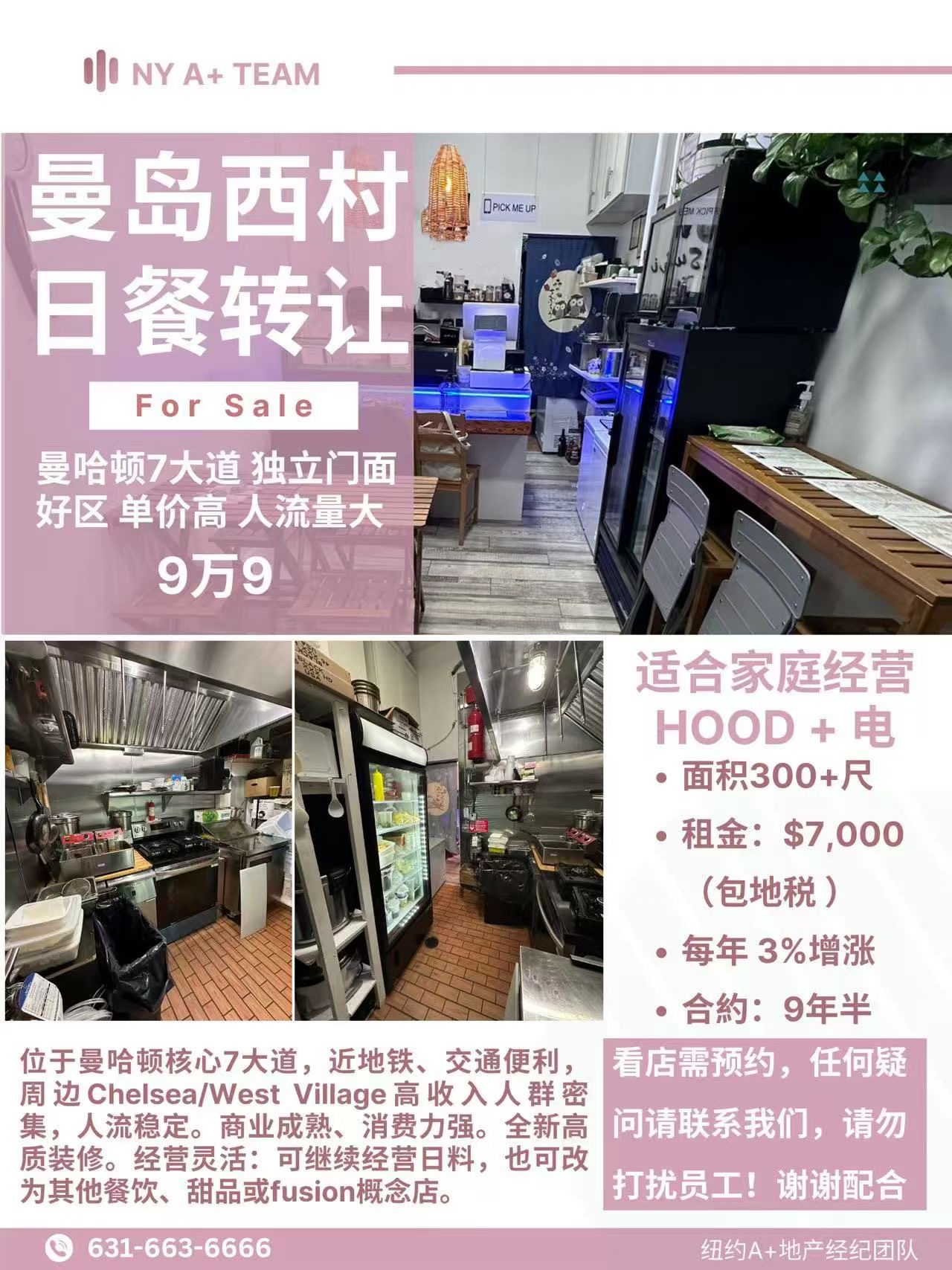 曼哈顿7大道日餐店转让|家庭经营首选|全新装修|稳定租约