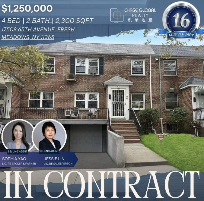 凯业地产再传捷报!Broker Sophia Yao 与 Jessie Lin 携手完成 Fresh Meadows 两家庭住宅签约,条款干净利落,成交高效漂亮。整个交易过程展现出团队协作与专业执行力,买卖双方顺利达成协议,实现快速过户目标。