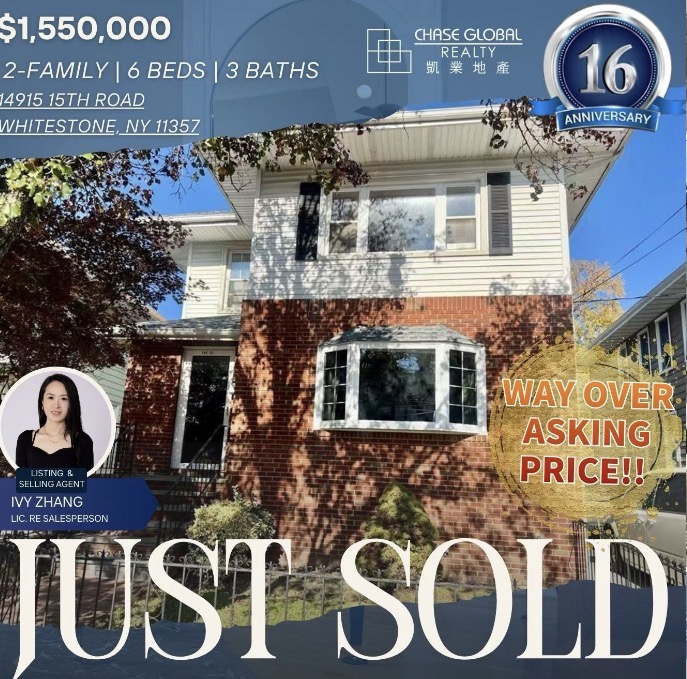 Ivy Zhang 再次用专业与努力书写辉煌成绩,Whitestone 案例完美展示了凯业地产在纽约房地产市场的顶尖实力!