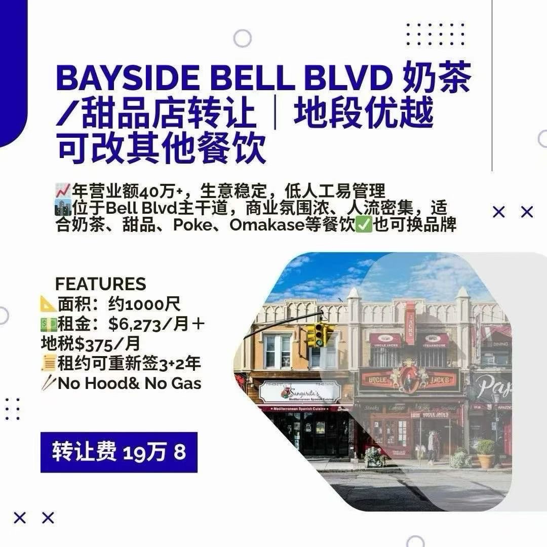 📍Bayside Bell Blvd 奶茶/甜品店转让|地段优越 可改餐饮