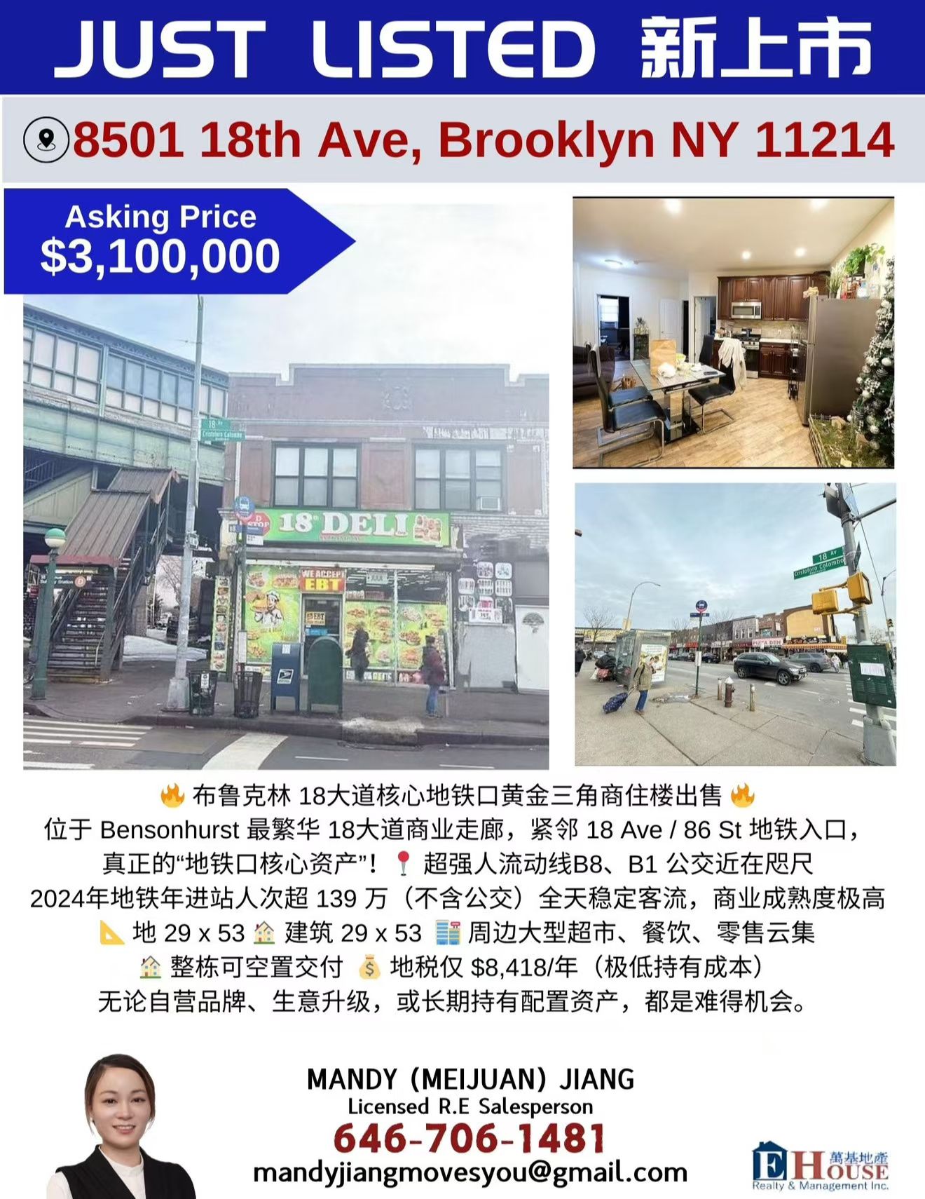 布鲁克林 18大道地铁口黄金三角角楼出售