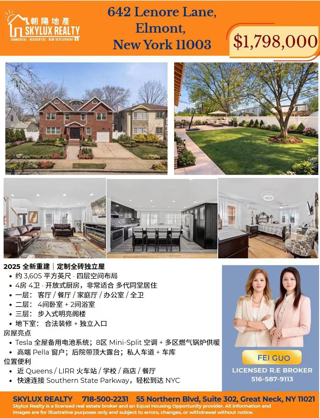 2025 长岛全新重建定制全砖独栋住宅,兼具现代舒适与经典建筑风格,四层宽敞布局,4卧4卫,开放式厨房,地下室及阁楼空间灵活。配备 Tesla 全屋备用电池、高端空调与门窗系统,后院带顶大露台,私人车道与车库,社区安全宁静,交通便利,周边设施齐全。无论自住还是投资,这栋住宅都能满足您的长期生活需求与资产保值增值目标。欢迎预约实地参观,把握全新重建住宅稀缺机会,实现家庭生活与投资价值的双赢。