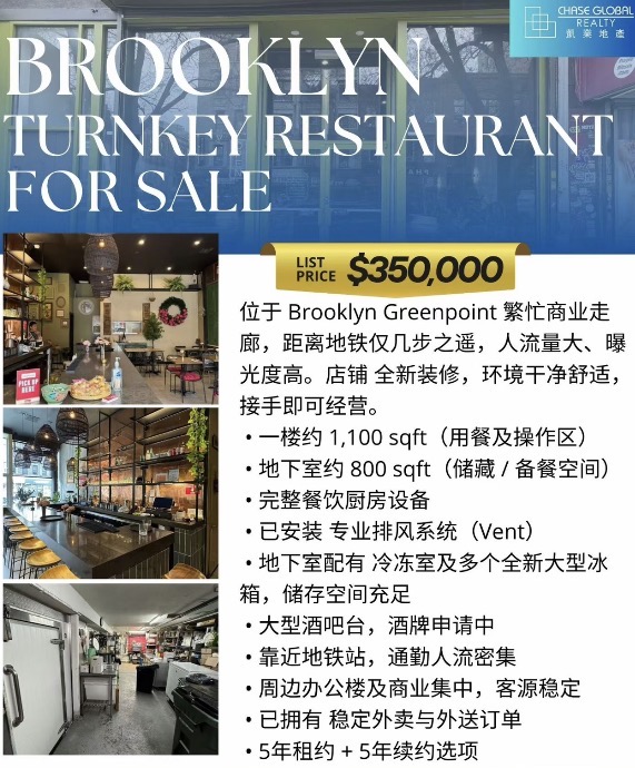 📍 位于 布魯克林 Greenpoint中心地段,人流密集,商业氛围成熟。