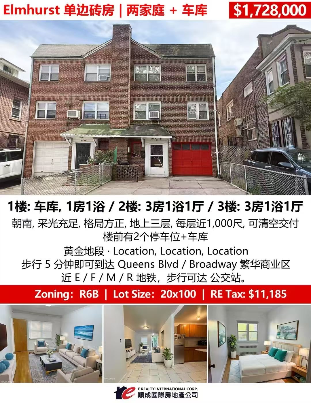 这栋 Elmhurst 两家庭住宅结合 黄金地段、宽敞布局、投资与自住兼顾 的优势,非常适合想要稳定租金收入或改善型自住家庭。门口车库及独立车道、后院空间大,提供灵活生活可能。