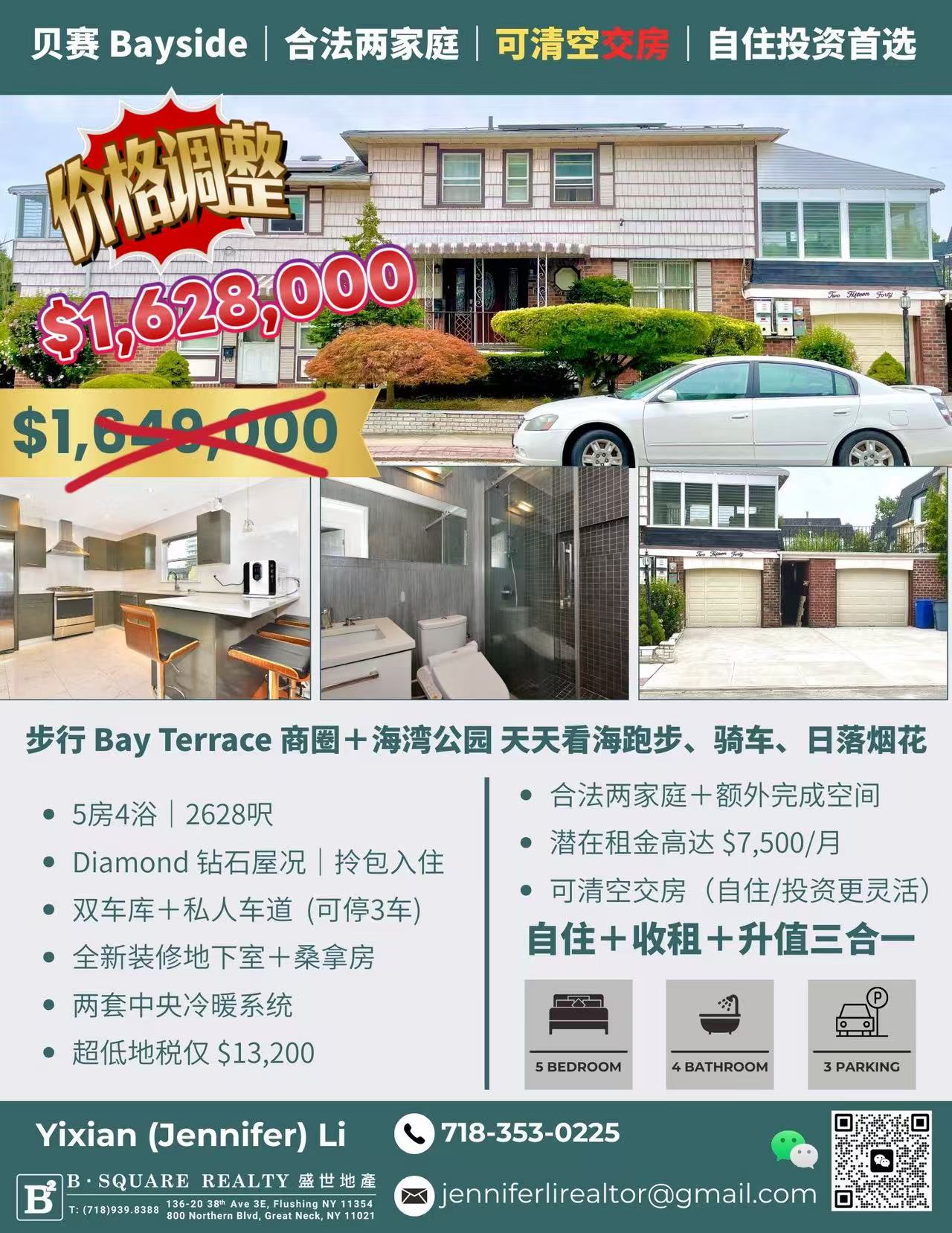 在当前纽约房地产市场中,真正同时具备“地段优势、低持有成本、结构清晰、可自住可投资”的房源并不常见。这套位于Bayside的两家庭住宅,不仅在数据层面具备吸引力,更在实际生活体验上提供了难得的平衡。如果你希望找到一套可以长期持有、同时又具备灵活使用价值的房产,这套房值得你亲自来看一看。