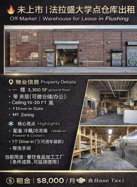 📢 Flushing 大学区核心仓库出租 | 宽敞空间、高配置设施、办公加工一体化