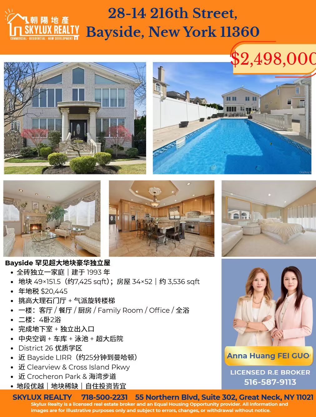 位于 Bayside 高端住宅区核心地段,近 Bayside Gables,这处独栋住宅拥有约 7,425平方尺超大地块,房屋总面积约 3,536平方尺,是追求空间、舒适和便利家庭的理想选择。建于1993年,全砖结构保证了优质建筑品质与耐久性。无论自住或投资,该物业都兼具高回报潜力与生活便利。